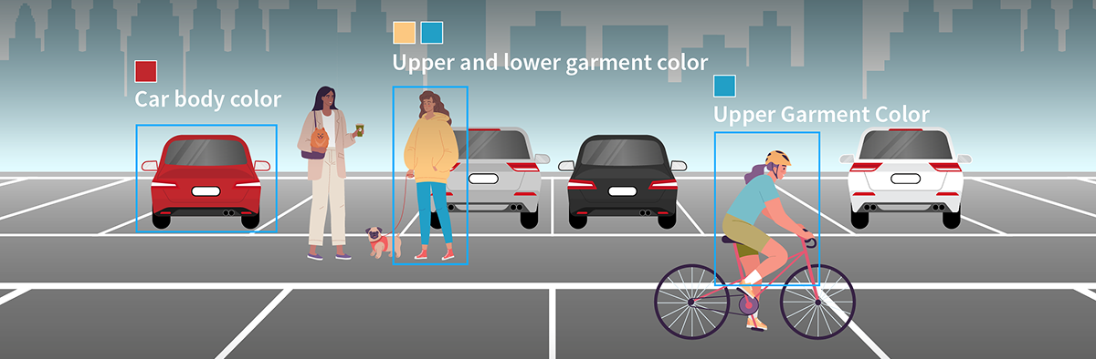 Color Retrieval, activated by the SIP or UMD function rule, detects target attributes and extracts color information. It currently supports color retrieval for individuals' upper and lower garments, motor vehicle bodies, and non-motor vehicle upper garments. Once collected, the color data can be quickly accessed via UNV's NVR, significantly reducing search time for users.