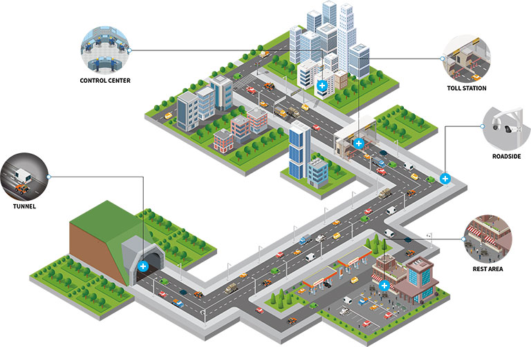 UNV highway video surveillance solution provides real-time monitoring in different scenarios such as roadside, tunnel, toll station and rest area. It helps highway officers locate the accident quickly and improve the reaction speed. Uniview has been dedicating to the surveillance industry for years, and UNV highway video surveillance solution is able to deal with any potential security challenges.