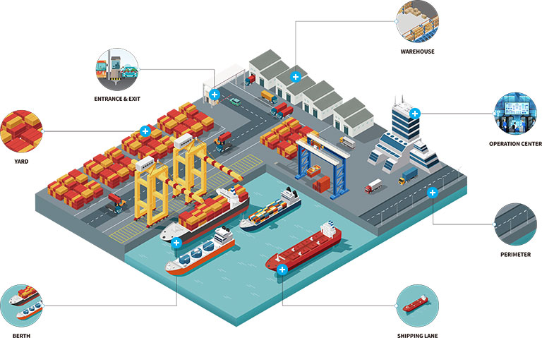 According to the survey, 80% of world trade is carried out by sea. Since the seaport includes both seaside and inland areas, two completely different and complex topographies, make huge challenges to the security of seaport. A professional video surveillance plays an important role in seaport security.