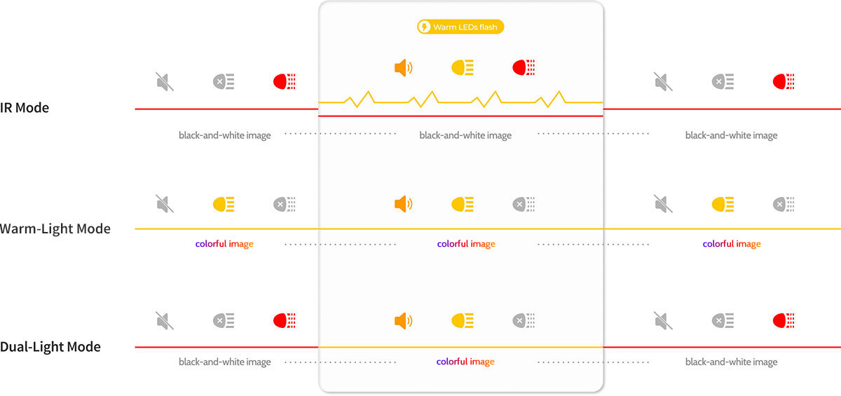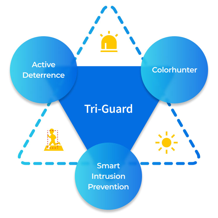 UNV Tri-Guard technology integrates Smart Intrusion Prevention (SIP) , ColorHunter and Active Deterrence. It’s designed to prevent crimes at night - It can not only alert when events happen, but also get color information in low-light environment.